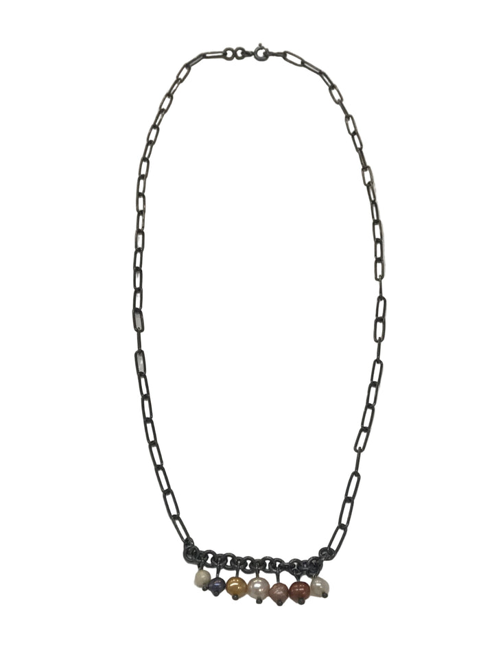 23" Handmade Oval and Round Link Chain with Pearl Dangles by Devon Clark