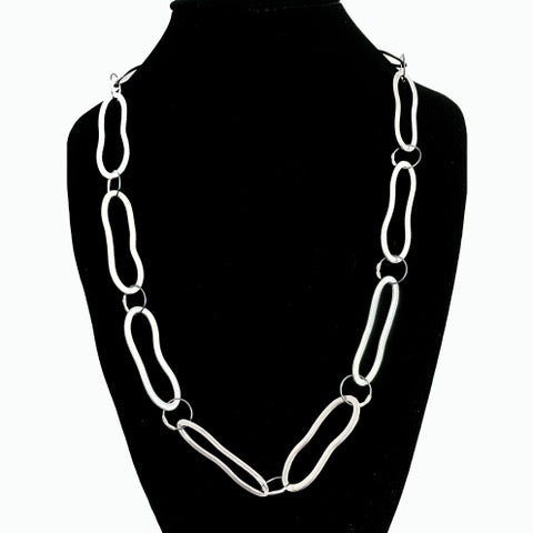 Necklace of loops made with sterling silver and titanium. 28" long.