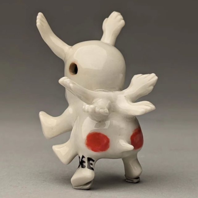 This hand fabricated pendant is made of glazed ceramic.