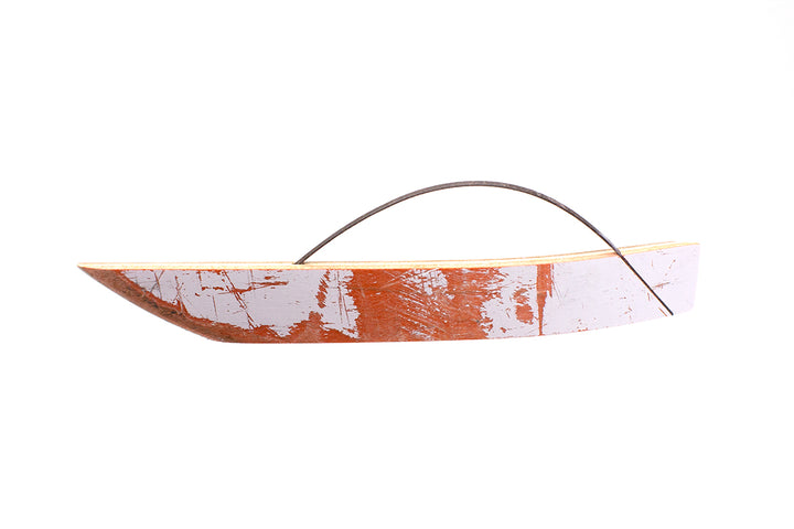Brick Separator, 2025. Found on 52.066998, 4.320981 at 15:20, 24/11/2024. The wood is recycled from broken skateboards--sugar maple plywood--and I pick the pieces of wire from the curb, discarded by rotary street sweepers. These flat wires are bevelled naturally from abrading against the street at a set angle.