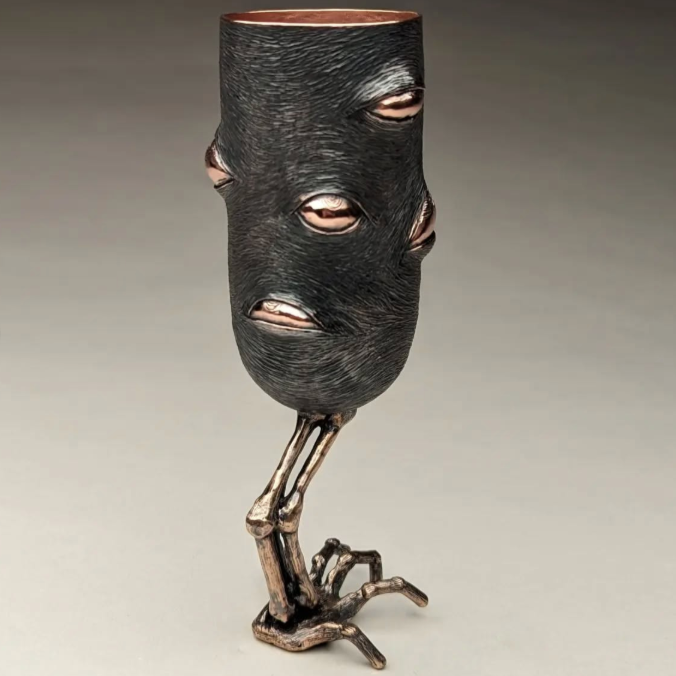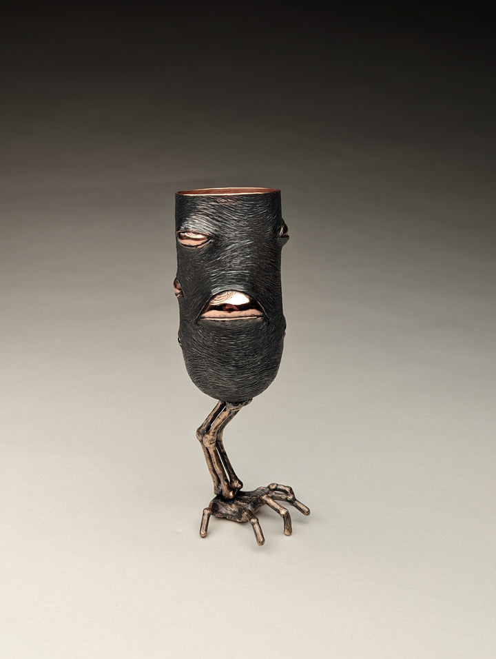 The cup is made of copper and its leg is bronze. 17.5 x 6 x 5.5cm.