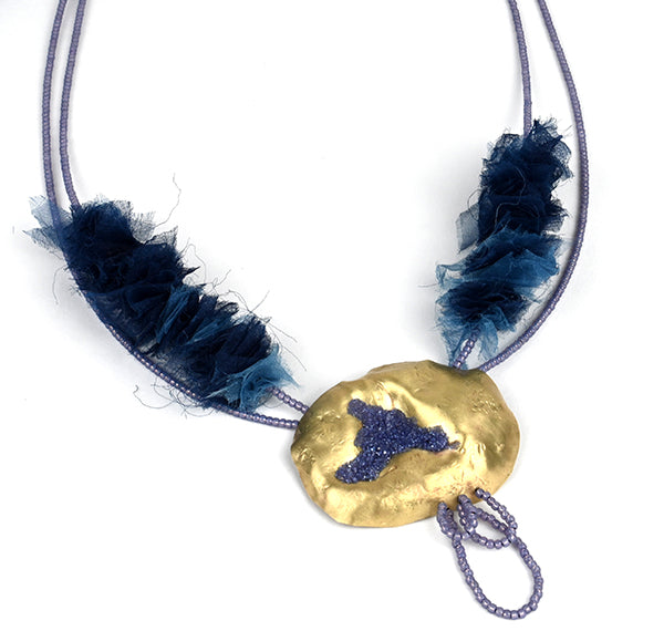 Crushed Sodalite on Brass with Indigo Silk Necklace by Monika Urbaniak