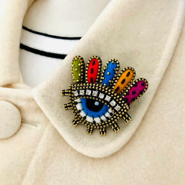 Eye With Leaves Mixed Media Brooch by Odile Gova