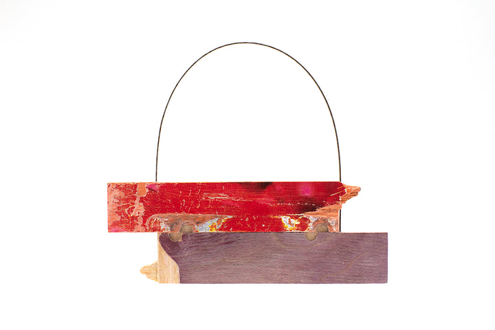 Fifth Position, 2025. Found on 52.073140, 4.310491 at 17:57, 15/11/2024. The wood is recycled from broken skateboards--sugar maple plywood--and I pick the pieces of wire from the curb, discarded by rotary street sweepers. These flat wires are bevelled naturally from abrading against the street at a set angle.