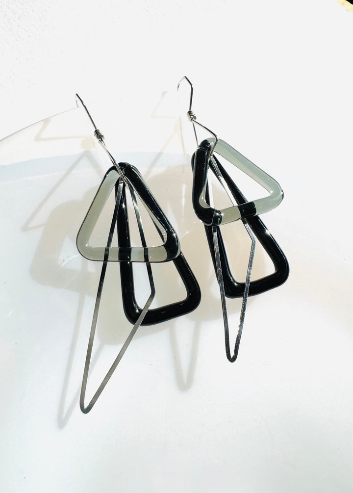 Geometric Black coloured glass earrings in varying shades with Sterling Silver ear wires.