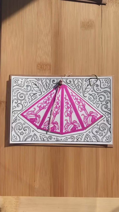 This pyramid-shaped ornament, printed by hand in fade-resistant pigment ink, doubles as a card and gift! The pattern can be easily removed from the backing card and folded into a decorative ornament. No additional materials, tools, or glue required. There is space on the back of the card to write a short greeting. The flat-packed design makes for a perfect gift to ship to friends and family worldwide.
