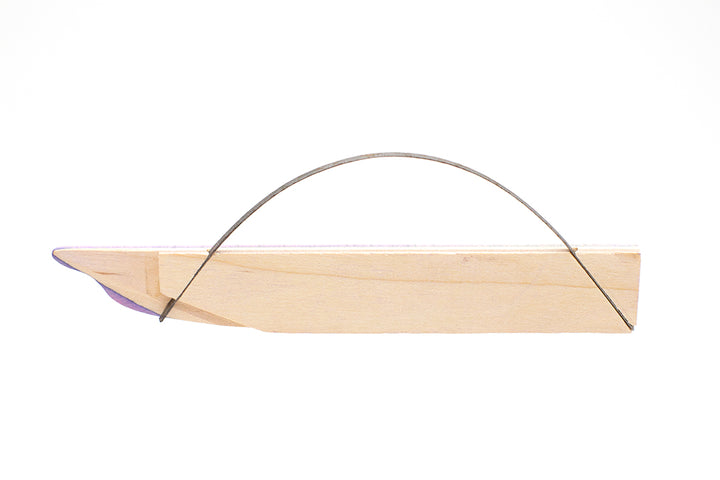 Slipped Stream, 2025. Found on 52.083129, 4.317683 at 15:49, 15/11/2024. The wood is recycled from broken skateboards--sugar maple plywood--and I pick the pieces of wire from the curb, discarded by rotary street sweepers. These flat wires are bevelled naturally from abrading against the street at a set angle.