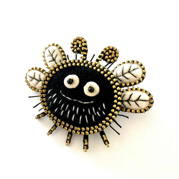A first for us: a grinning housefly! Brooch measures approximately 2 x 3".