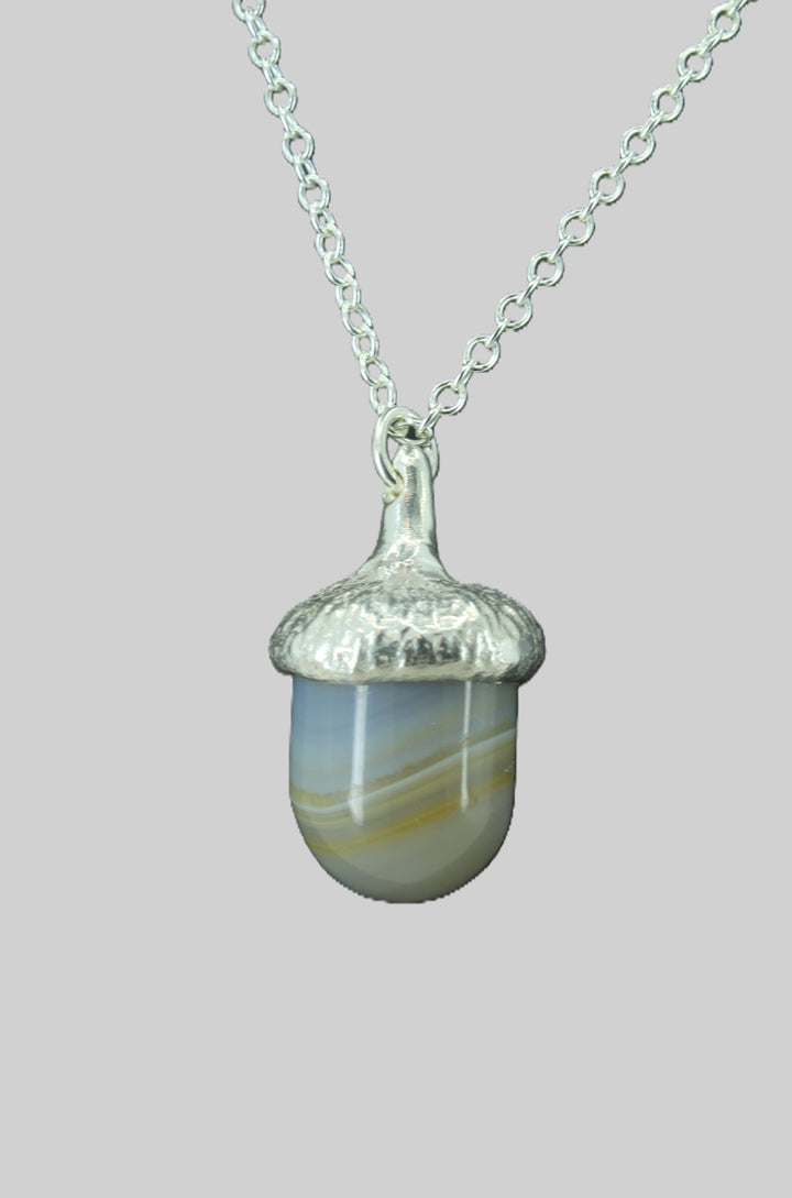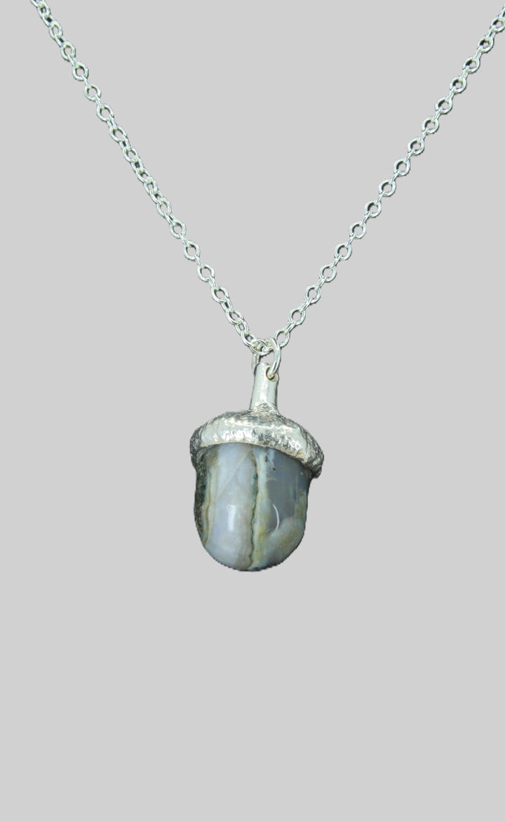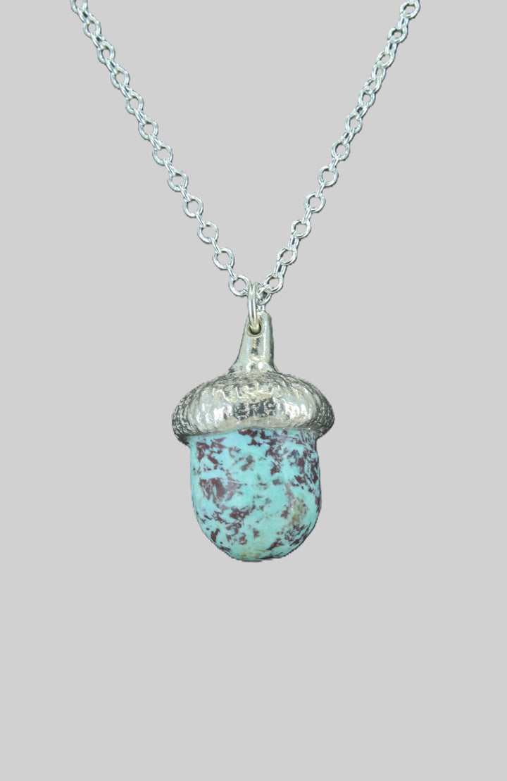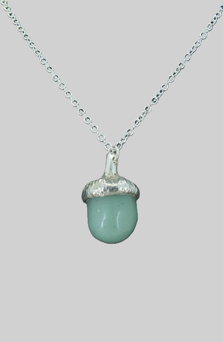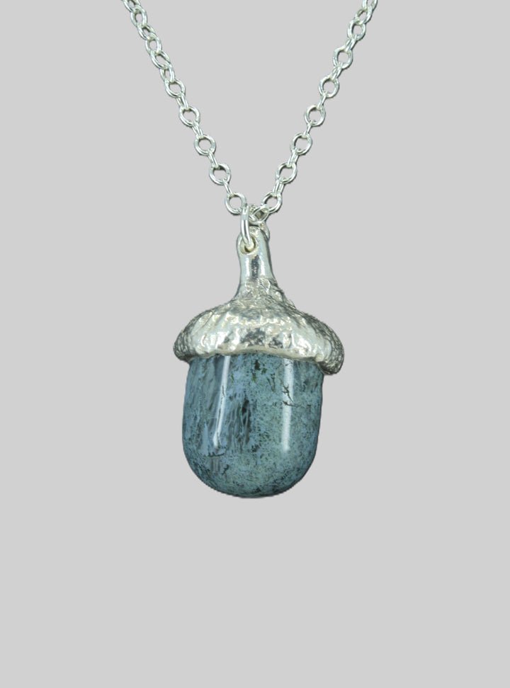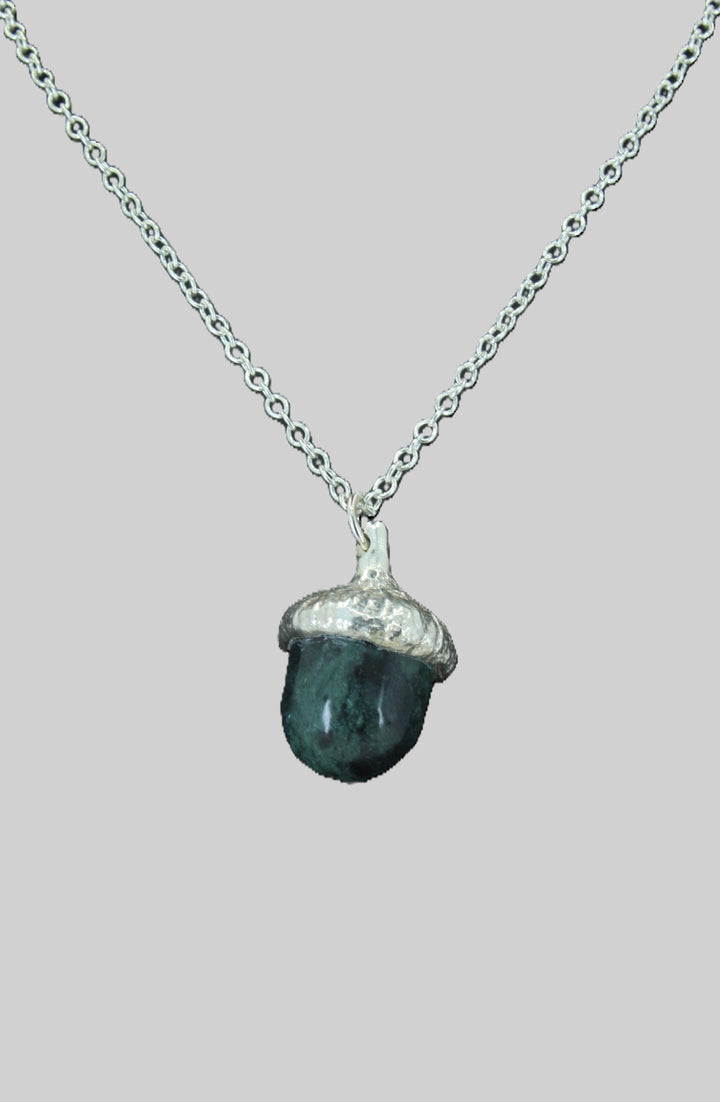 Acorn Pendant - Hand-carved stones set on a sterling silver cap. The silver chain is 19" long.