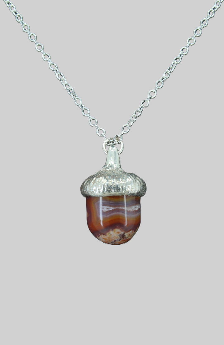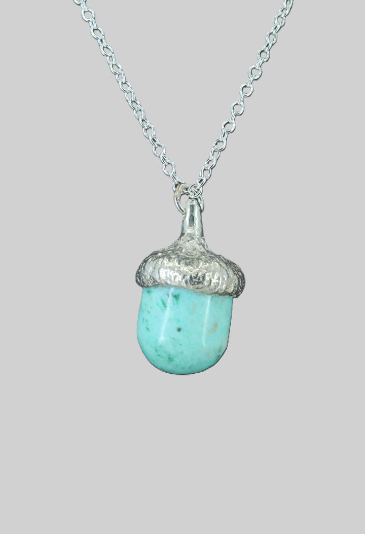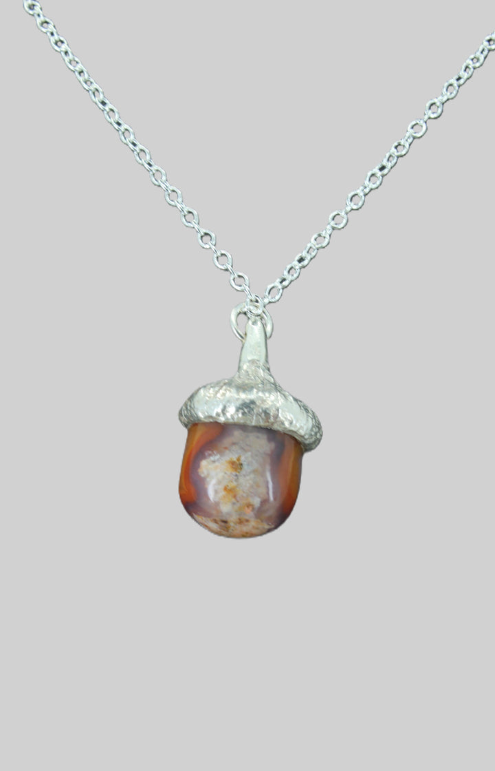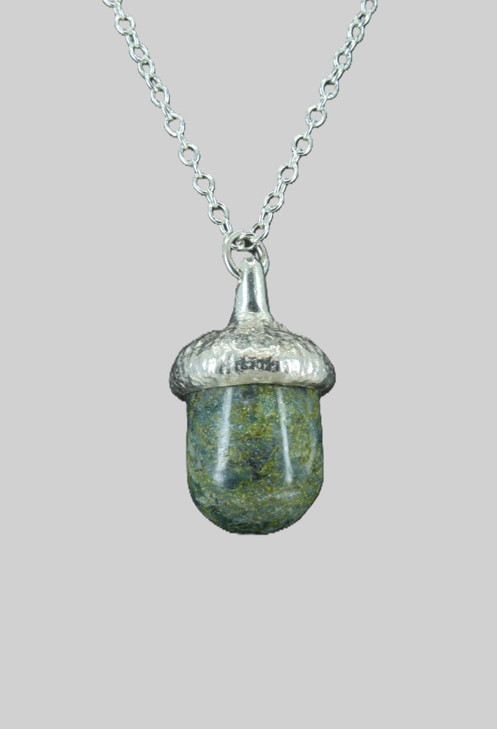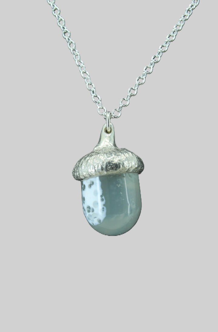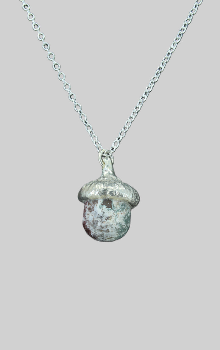 Acorn Pendant - Hand-carved stones set on a sterling silver cap. The silver chain is 19" long.