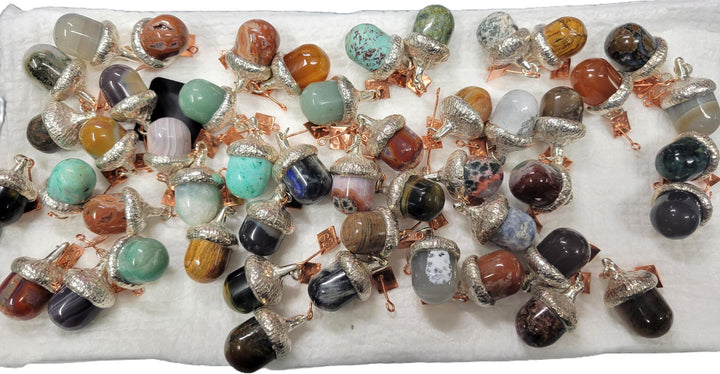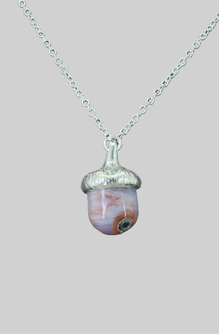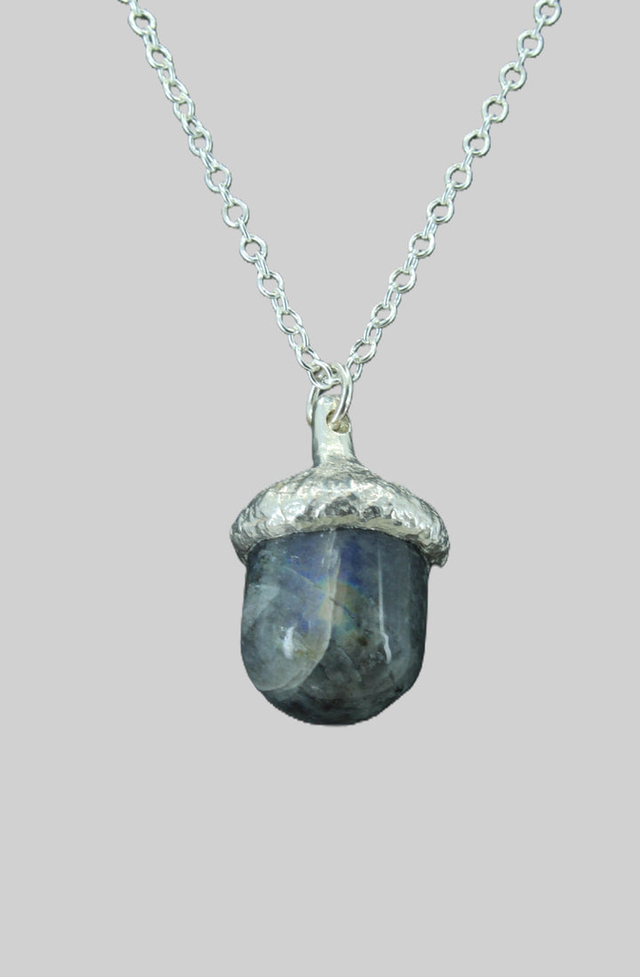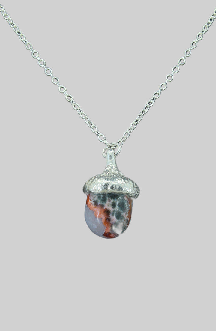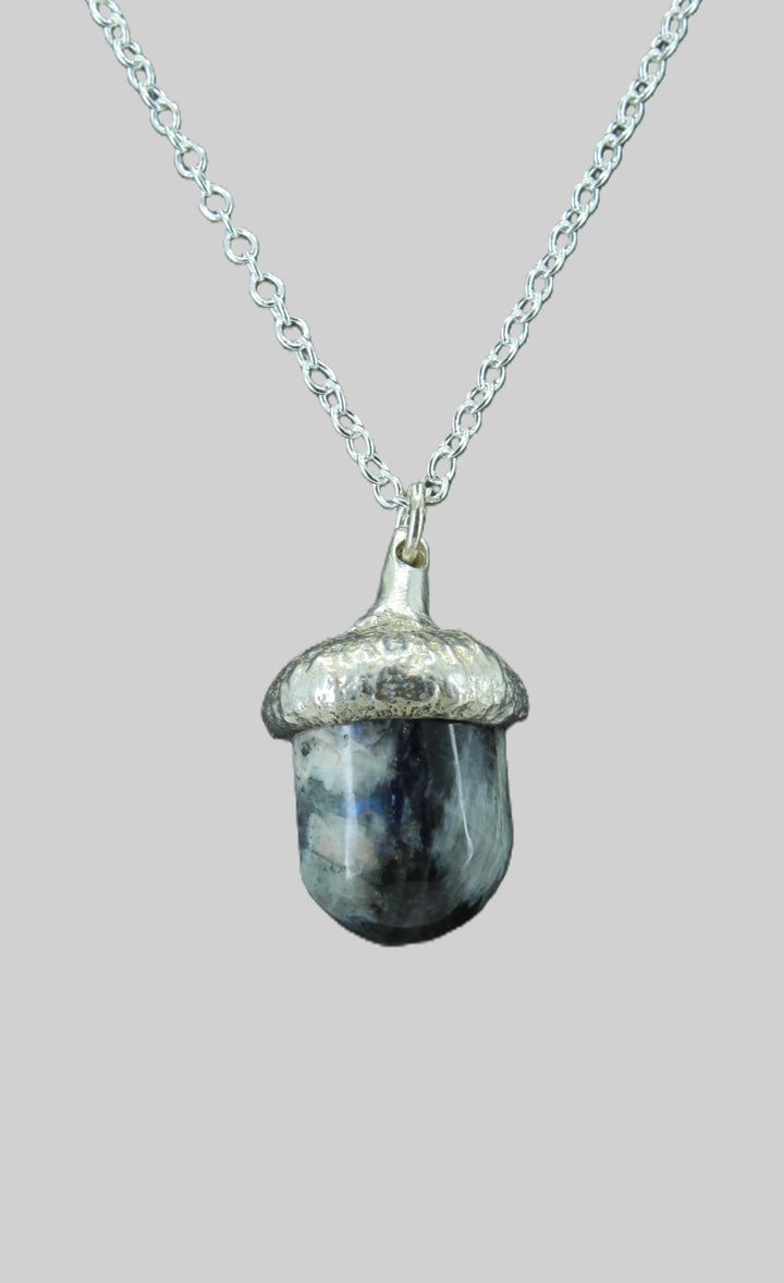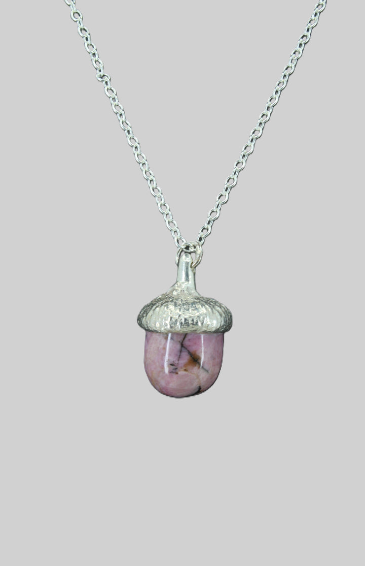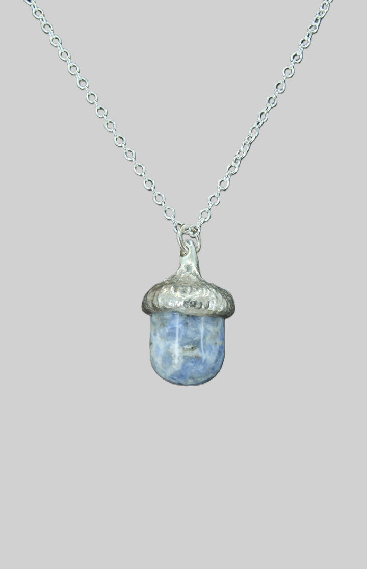 Acorn Pendant - Hand-carved stones set on a sterling silver cap. The silver chain is 19" long.