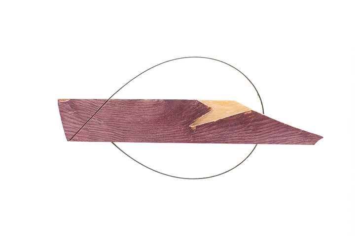Woodwind, 2025. Found on 52.074201, 4.315240 at 23:02, 15/11/2024. The wood is recycled from broken skateboards--sugar maple plywood--and I pick the pieces of wire from the curb, discarded by rotary street sweepers. These flat wires are bevelled naturally from abrading against the street at a set angle.